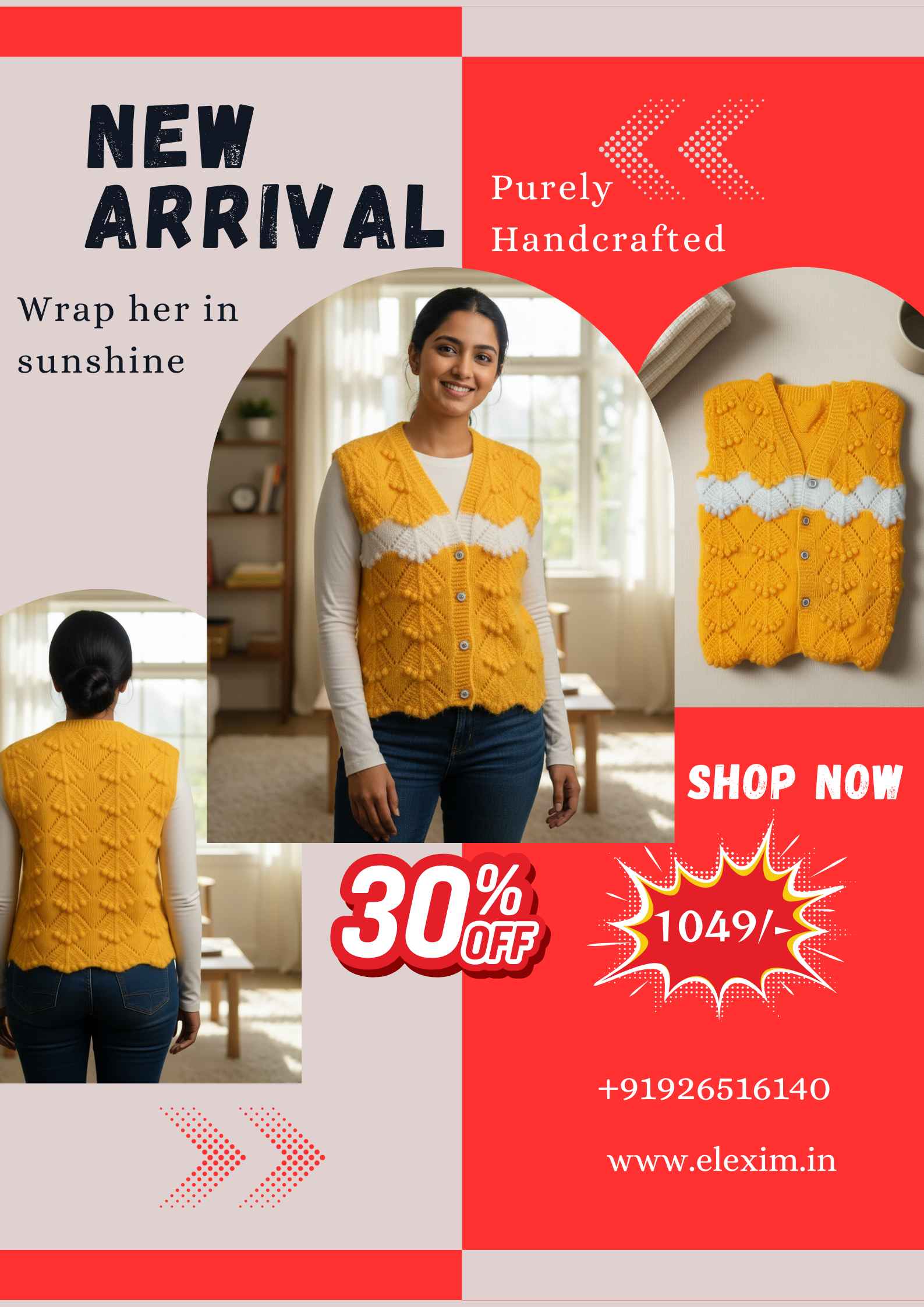 & Free ShippingGive her extra comfort and warmth with this handmade knitted cardi in cheerful yellow with a charming white band. Designed with delicate patterns and soft, skin-friendly yarn, it is perfect for keeping her cozy during chilly days. Makes a thoughtful, adorable gift for any occasion.